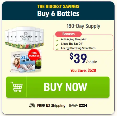 At this moment you can order Nagano Tonic supplement for 69% OFF + FREE Shipping. This is a Limited-Time Offer and it won’t be available for long.Â